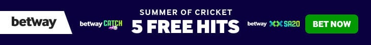 Bet on all Betway SA20 cricket action all tournament long as we bring you the best online cricket betting platform. We offer a variety of Bet Types you can bet on, these include: Match Result, Team with Top Batter, Will there be a tie, Top Bowler, Coin Toss, Any Player to Score a Milestone, Total Runouts. Join Betway now & bet on cricket.