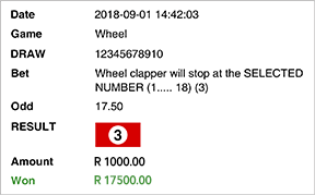 is valid if the wheel makes at least three (3) full spins clockwise. The spin starts when the wheel starts spinning clockwise and the pointer leaves the sector where it was previously standing. The result of the draw is the sector’s number