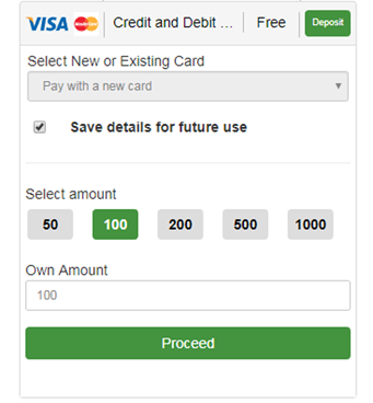 Tip: select "Save details for future use" to make depositing easier the next time.3Enter the amount you’d like to deposit and tap Proceed4Enter your card details (number, expiry date & CVV), then tap Next5Complete your bank’s authorisation6