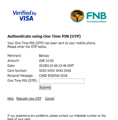 Enter the OTP (one-time pin) number sent to the mobile number associated with your Standard Bank account