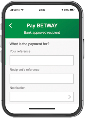 56Enter your Betway account number (mobile number) as your reference7Enter the OTP (one-time pin) number sent to the mobile number associated with your Standard Bank account