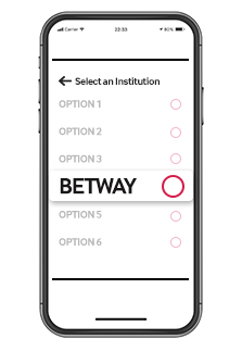 Dial *120*48463#2Select option 23Select your preferred voucher method4Enter the voucher pin and complete your depositABSA EFT1Log into your Absa app2Tap Pay , then Pay new beneficiary3Tap Pay bill4Choose Betway from select institution and complete the remaining two fields- Enter your Betway Account Number (mobile number) as your Bill Account Number