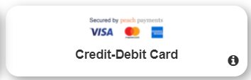 Select the Credit/Debit Card option (Peach option is indicated by the “Secured by Peach Payments” infographic). We can process Visa, Mastercard and American Express (Amex)